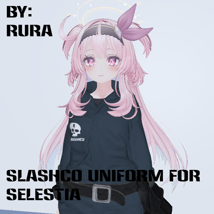 SlashCo Uniform for the Selestia Booth Base pre-set up with VRCFury and uses Poiyomi 9.11 and above shaders.